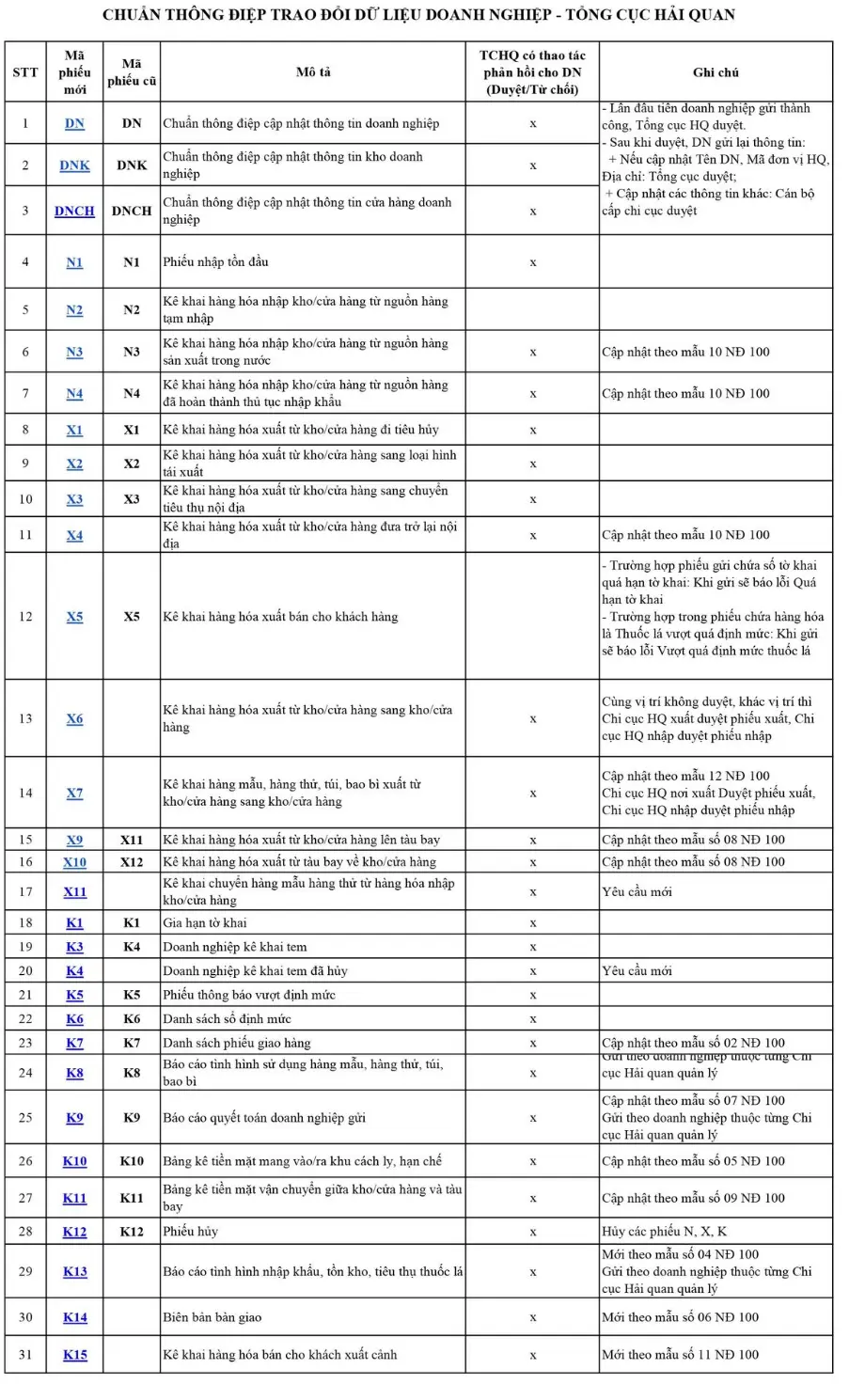 Các chuẩn thông điệp trao đổi dữ liệu Doanh nghiệp - Tổng cục Hải quan